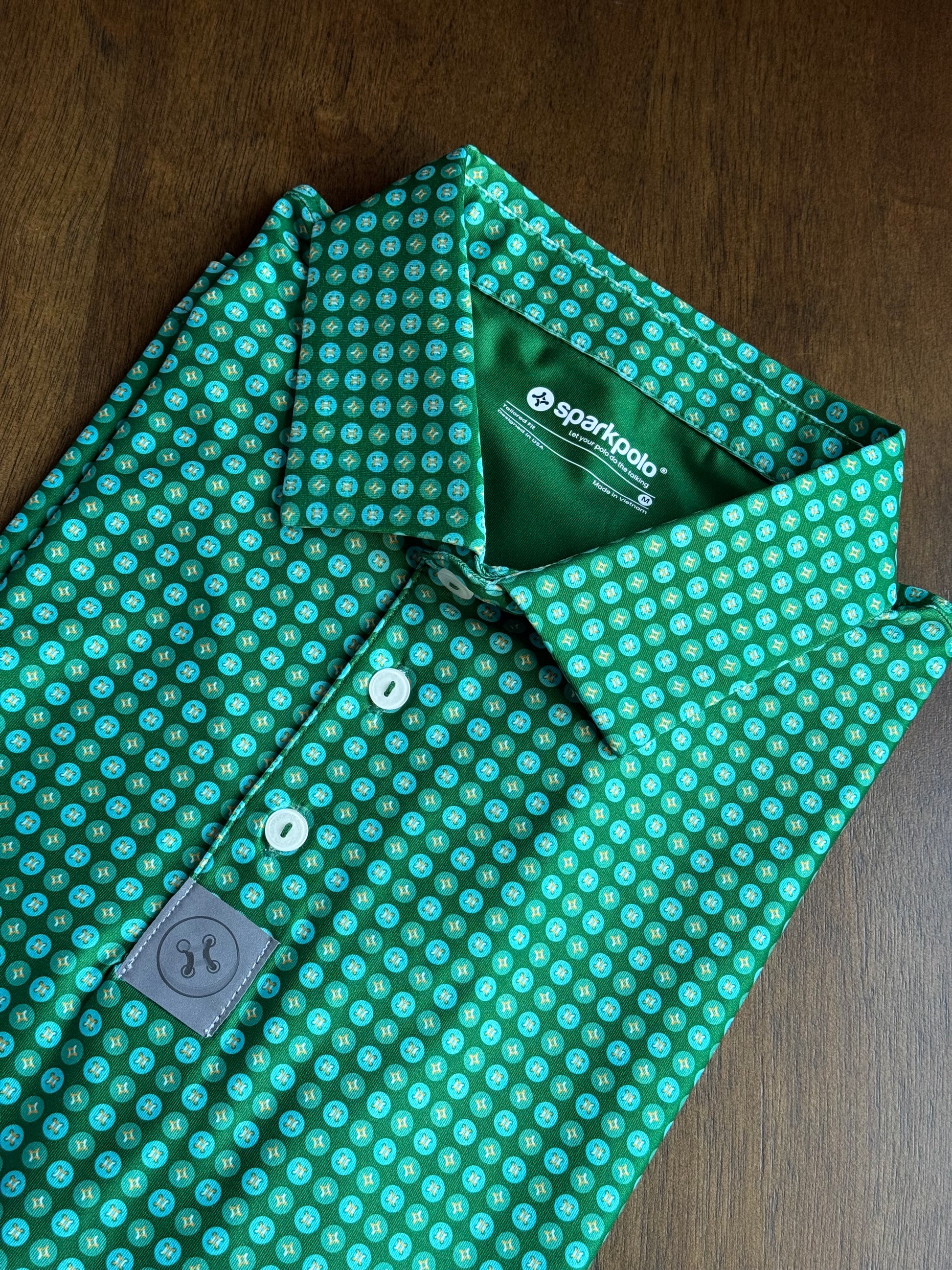Showcase the quality and craftsmanship of Sparkpolo with this vibrant green sample. Featuring a subtle step-and-repeat Sparkpolo logo, woven labels on the placket and sleeve, and an HD logo on the back neck, it highlights premium customization options. Crafted from performance fabric with moisture-wicking, four-way stretch, and a tailored fit, it ensures all-day comfort and professionalism. Finished with a sleek semi-spread collar and refined detailing, this polo is perfect for distributors to let clients experience Sparkpolo firsthand, whether in meetings or on the golf course, without feeling like a walking billboard.
